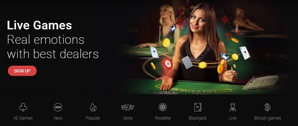 There is also a separate section of live dealer games featuring such all-time favorites, including: